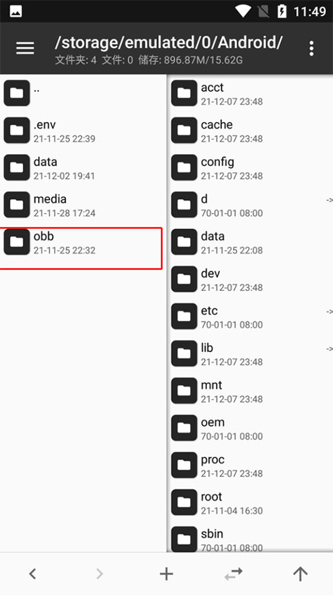 打开 MT 管理器后第一眼看到的就是它的左右两个操作窗口,该设计已经是 MT 的标志之一,与之对应的是双窗口操作模式。如果你是第一次使用,开始会不太适应,但相信我,等你花点时间来熟悉它后,你的操作效率会大大高于使用其它文件管理器。