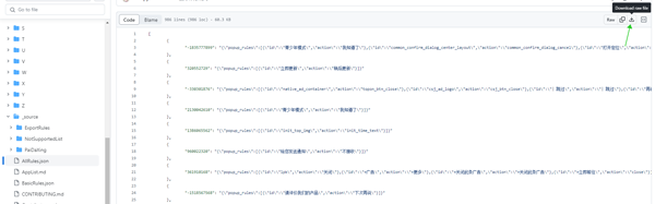 正如上图中所示,用户只要关心json格式文件就可以,而三个json文件格式中只需要用户关心所有规则代码文件即可。然后点击右侧的下载文件,将文件下载即可