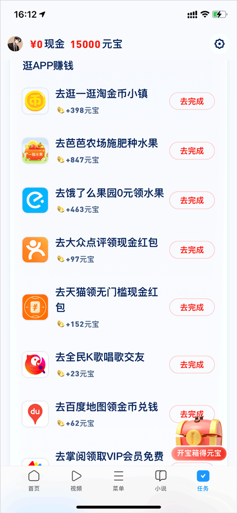 1、在用户完成账号登录后,在底部的“任务”栏里可以领现金。