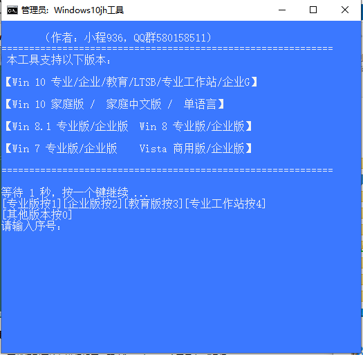 2、选择电脑对应的版本进行激活,[专业版按1]、[企业版按2]、[教育版按3]、[专业工作站按4]、[其他版本按0],