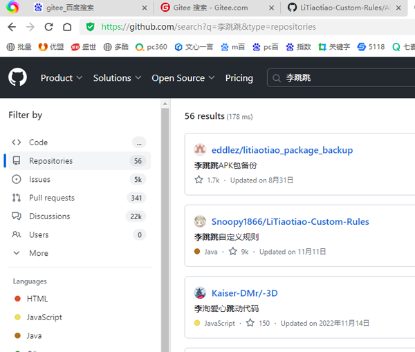 用户可以前往github上来获取最新代码,当然这个github网站有时候在国内是打不开的,而国内的最大的开源代码库gitee是没有存放这些规则代码的,下图就是gitee中的搜索时找到到这些规则代码,小伙伴们不用费时间在这里找了